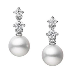Mikimoto Cultured Akoya Pearl and Diamond Drop Earrings